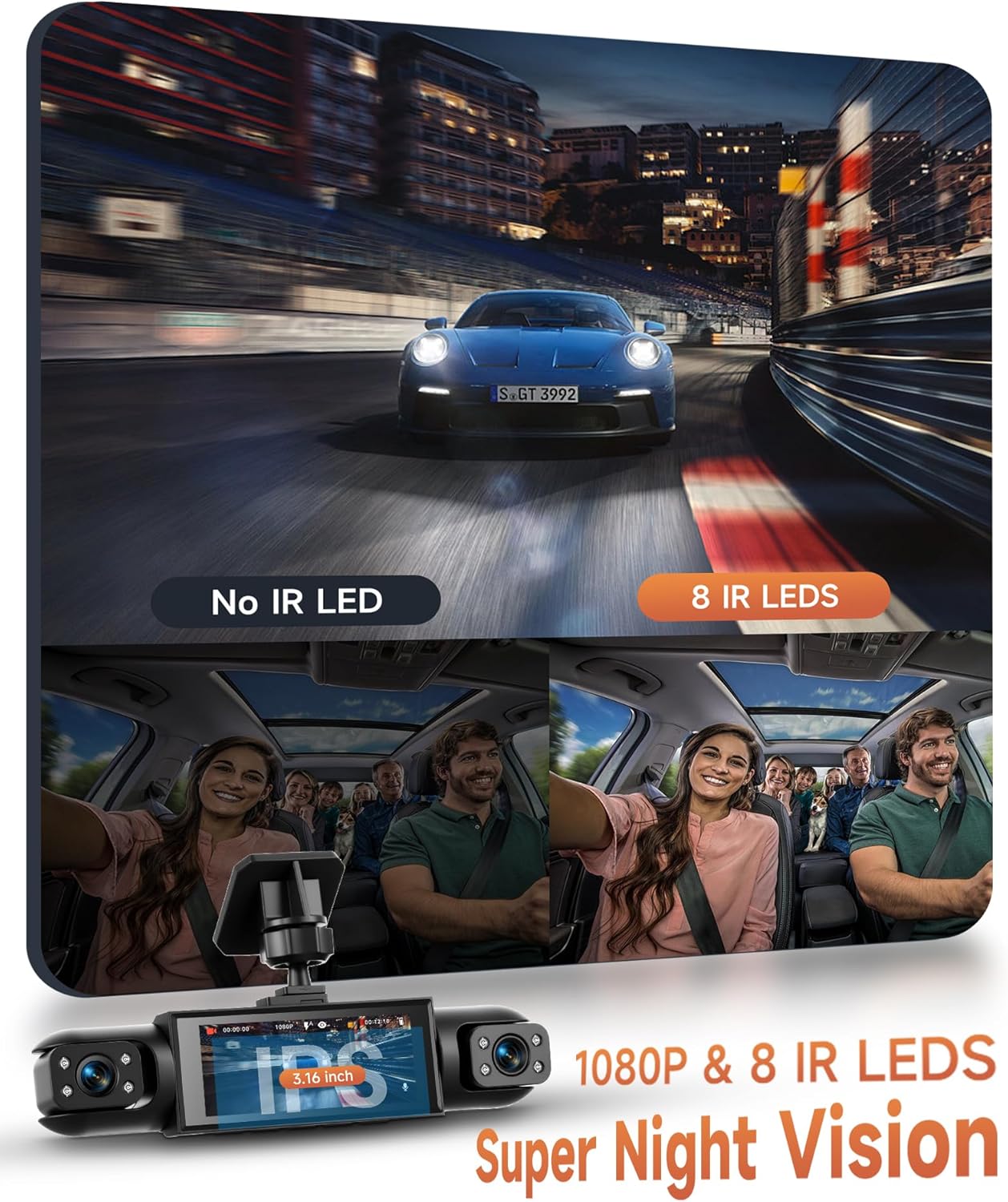 4 Channel Dash Cam Car Degrees with Cameras 1080P Front and Rear Left Right, 3.16 Inch 1080P Dash Camera is a budget-conscious multi-angle dash cam that advertises four cameras for 360° coverage and a 3.16″ 1080P display.